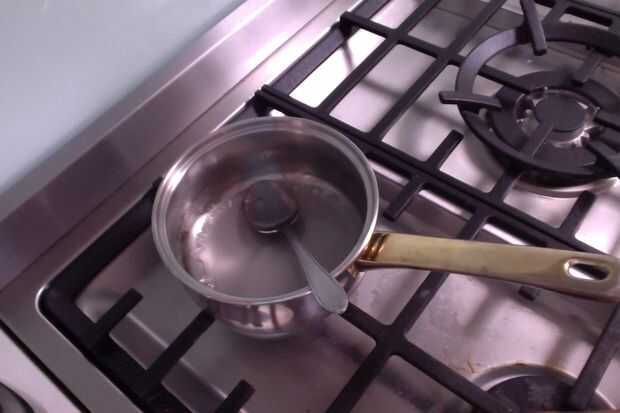 Derretir la 4 cucharaditas de azúcar con la cuchara de 1 sopa de agua.