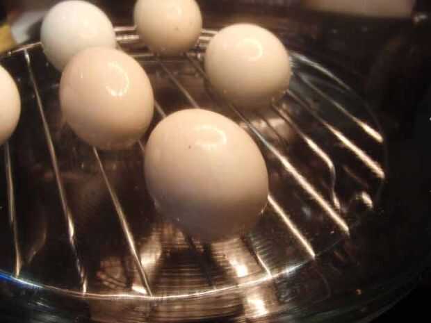 El calor sólo es dirigido desde arriba, así que si quieres cocinar algo que requiere dorado visible deberá voltear el alimento medio camino a través de la cocción. En este caso los huevos son lo suficientemente pequeños como para que se calientan uniformemente a través como las corrientes de convección no circulan todo el exterior de las cáscaras movimiento de los huevos son necesarios.