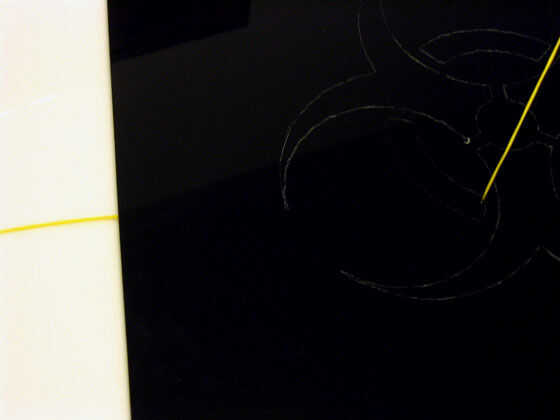 Hilo de EL alambre por el orificio de la parte posterior de la hoja de acrílico en la parte delantera. Sujete EL alambre hacia abajo donde usted quiere pegar, usando tus rasguños como guía. Empezar por solo pegar una pulgada o menos. EL alambre en su lugar, y presionando ligeramente, usa la aguja Plasticator aplicar una o dos gotas de pegamento. Acaba de poner una gotita en EL alambre, y se ejecutará por los lados. Acción capilar aspirará el pegamento en su lugar, en el punto donde EL alambre se encuentra con la superficie acrílica. Usando las uñas de uno o dos dedos, mantener EL alambre en su lugar durante 30-60 segundos mientras que el pegamento deshace el acrílico y crea un vínculo. Entonces mover a la siguiente pulgada de alambre en su lugar y pegamento de la misma manera, y así sucesivamente. Si usted pega alambre en la forma y hay EL alambre Sobrado, simplemente puede cortar el alambre extra con cortadores de alambre o cuchillas nippy.