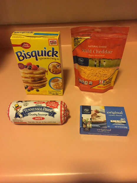 Utilice TN orgullo pero no cualquier marca), 1 paquete de crema de queso (8 onzas), 4 onzas de queso cheddar rallado (1/2 taza), 1 1/4 taza de bisquick (o cualquiera de marca).