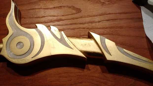 Uso masilla para madera para rellenar los huecos antes de pintar. Una vez que está seca y lijada, uso la cartilla del llenador en todo el arco. Me gusta arena a grano 400, luego rocíe una capa final para asegurarse de que es más suave. Por último, aerosol pintar el arco de oro (o cualquier color elija).