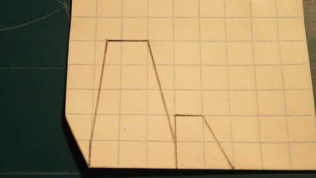 Después de que el fuselaje se hace, tomar otra hoja de papel que se dobla por la mitad a lo largo de las líneas de cajas. Marcar el ala como se muestra (1 caja de constante acorde a la raíz, un barrido de vanguardia de 1 caja de acorde que se decae cada 8 cajas hacia afuera de la caja acorde constante, haces una marca 4 cajas fuera de la caja acorde constante, 0,5 cajas detrás de lo es estar conectado; y un borde posterior barrido de 1 caja de decadencia a lo largo de las 4 cajas de envergadura). Luego cortar el ala. Medir 2 cajas a lo largo del pliegue, medir dos cajas hacia arriba de una marca y hacer otro punto. Luego trace una línea diagonal conectar esta nueva marca a la que más lejos. De la marca que acaba de realizar, medir una caja más lejos de la ahora conectado a la línea y haga una marca. Esboce una línea entre esta marca y la otra marca a lo largo del pliegue. Luego corte los estabilizadores horizontales.