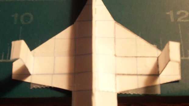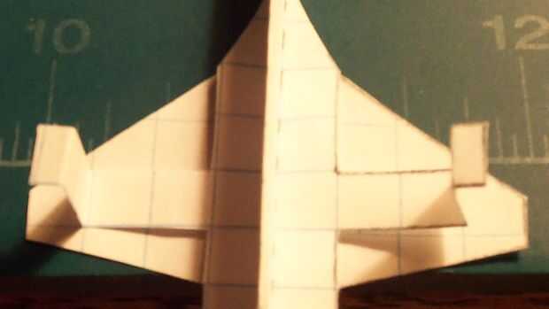 Corte sus estabilizadores horizontales y deslícelos a través de la abertura en el fuselaje que hiciste anteriormente. Cuando a través, doble hacia arriba y aplique la cinta en la parte inferior; luego doble hacia abajo. Aplicar una grapa en la zona del contrapeso. Esto habrá completado su avión.