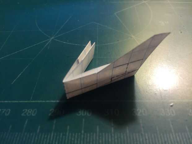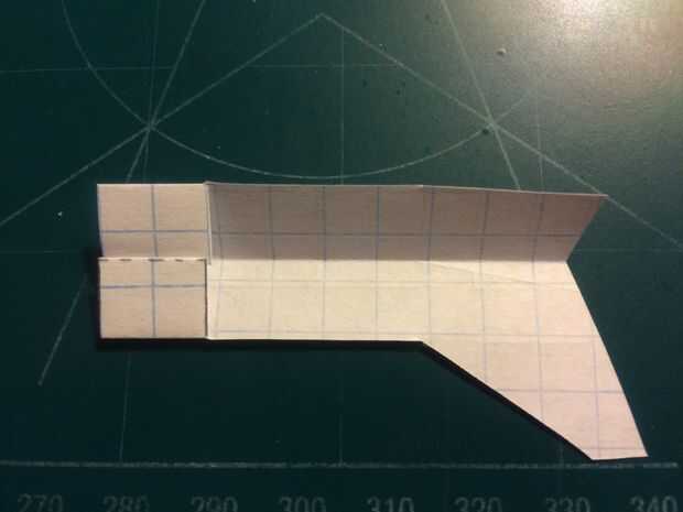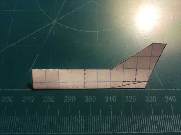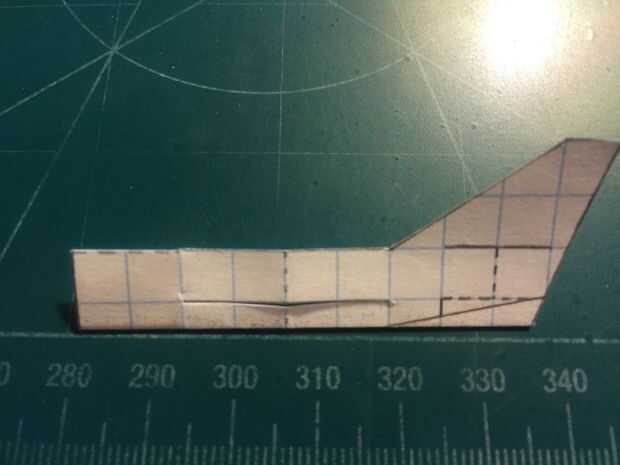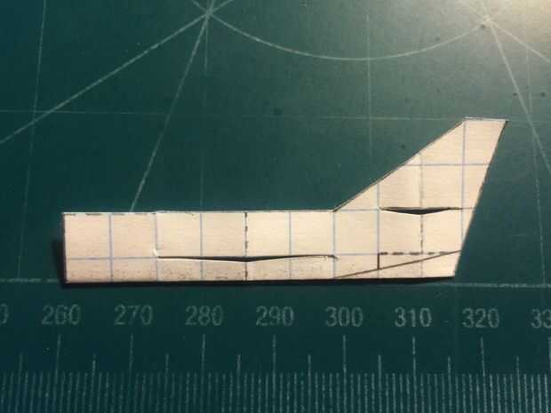 Comenzar a construir el fuselaje doblando los contrapesos en el fuselaje. Una vez han sido doblados, revelan el fuselaje y cortar el estabilizador vertical derecha. Una vez hecho esto, restaurar el pliegue. Después de hacer esto, doble el fuselaje a lo largo de las cajas de línea punteada vertical dos a popa de los pliegues de contrapeso. Después de realizar el corte y restaurar el fuselaje de su estado doblado, doble estabilizador vertical hacia adelante a lo largo de la línea de puntos que indica el centro de lo que será ser la ranura de los estabilizadores horizontales, luego se corta. Cinta de designado.