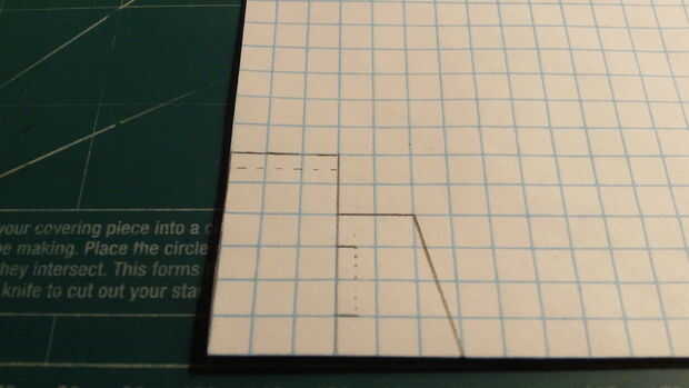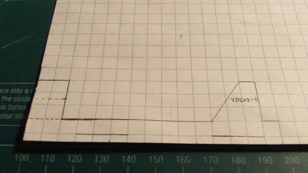 En primer lugar, comenzar por plegamiento eres tu papel milimetrado en la mitad (excepto tres cajas en el lado perforado). Una vez que el papel ha sido doblado adecuadamente, haga dos marcas--15 cajas full apart. Use una regla para hacer una línea recta con una longitud de 15 cajas directamente a 1 fila de cajas de las dos marcas que acaba de hacer. Luego realizar el timón y contrapeso como se indica. Siga las marcas de la fotografía. 1 caja de detrás el contrapeso, marque una cajas de línea 3 de longitud a lo largo de la línea en el fuselaje. cajas de 1,5 desde el comienzo de esta línea, hacer una línea de puntos vertical. Entonces, bajo el timón, marque una línea que se extiende 3 cajas. cajas de 1,5 desde el comienzo de esta línea, hacer una línea de puntos vertical. Una vez que todo está marcado hacia fuera, cortar el fuselaje.