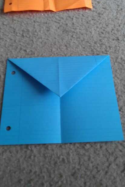 a continuación, doblar esquinas thetop hasta el pliegue de centro. Luego, doblar la parte superior del papel hacia abajo. Por último, doble las dos esquinas superiores hacia abajo otra vez.
