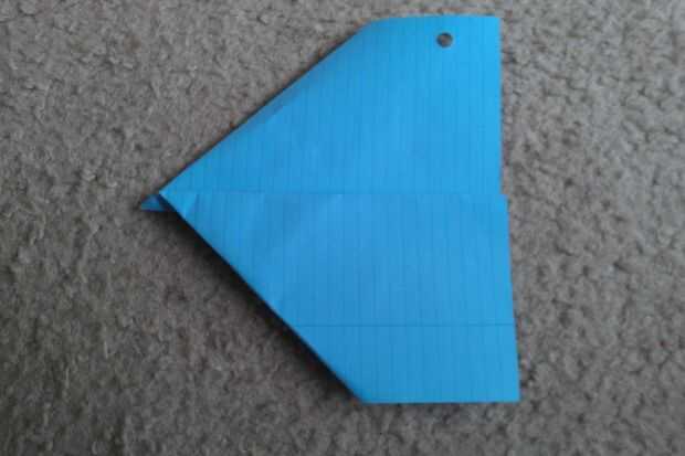 Plegar las alas del avión. Luego, doblar las puntas de las alas para hacer las aletas.
