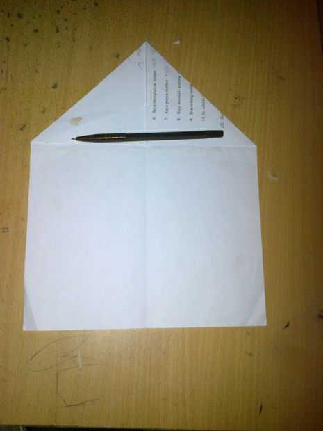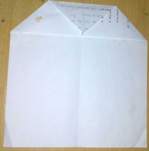 Doble el papel en half.open el papel y doblar las esquinas para el pliegue del centro. A continuación, tire hacia atrás la nariz hasta el punto en que terminan los pliegues de las esquinas.