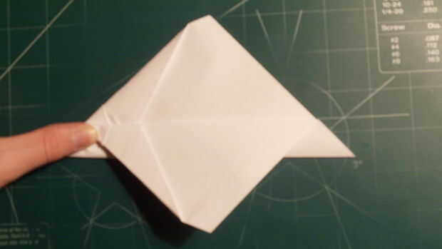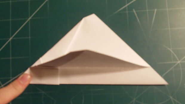 Aproximadamente 3/4 a 1 pulgada por encima del doblez de centro en el papel, doblar el ala hacia abajo. Hacerlo en ambos lados.