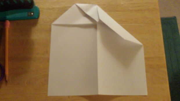 Se trata de cómo hacer el avión de papel más rápido que he visto. Llaman el águila.Paso 1: Doblar por la mitad Este es un paso fácil. Sólo doblar una hoja de 8,5 x 11" de papel en medio abajo el centro como en la foto y luego abrirlo para arriba otra
