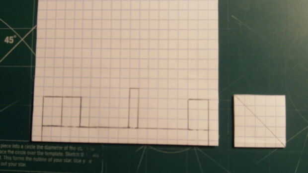 En primer lugar, comenzar por plegamiento eres tu papel milimetrado en la mitad (excepto tres cajas en el lado perforado). Una vez que el papel ha sido doblado adecuadamente, haga dos marcas--17 cajas full apart. Use una regla para hacer una línea recta con una longitud de 17 cajas directamente a 1 fila de cajas de las dos marcas que acaba de hacer. Luego realizar los elevadores, timón, struts y contrapeso, tal como se muestra. Siga las marcas de la fotografía. Fuera de un pedazo de papel cuadriculado que tiene un pliegue de centro alineado, haga una marca diagonal que se extiende 5 por 5 cajas. Una vez que todo está marcado hacia fuera, cortar el fuselaje y las alas.