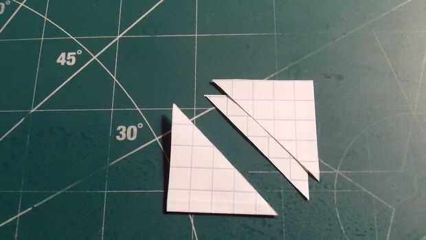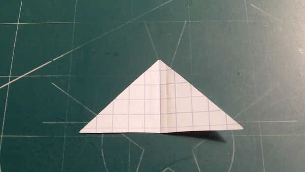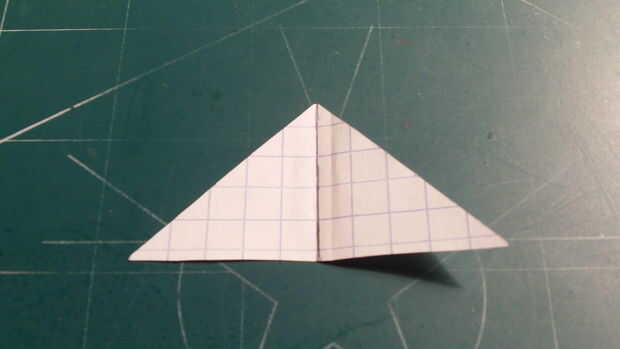 Corte el ala fuera cortando a lo largo de eso línea diagonal que hiciste anteriormente. A continuación, abra. Puede tirar el restos de la parte después del corte. Una vez desplegadas las alas, marcar abajo del pliegue del centro.