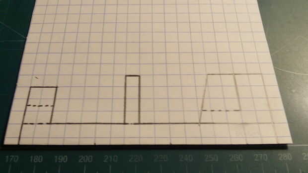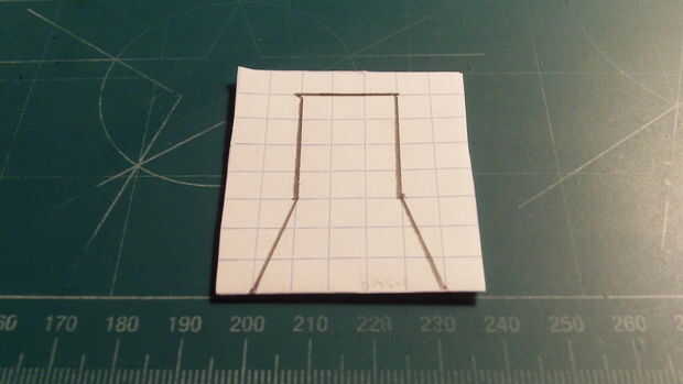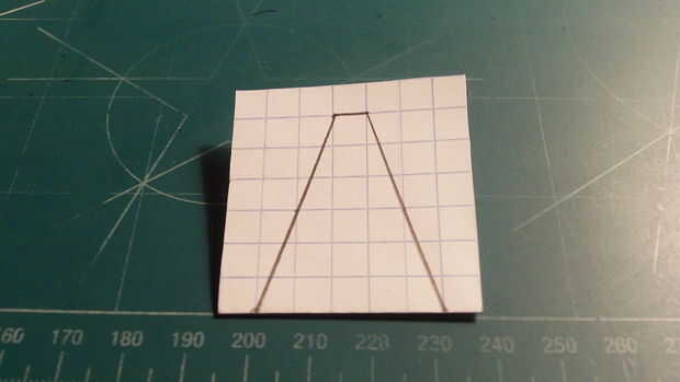 En primer lugar, comenzar por plegamiento eres tu papel milimetrado en la mitad (excepto tres cajas en el lado perforado). Una vez que el papel ha sido doblado adecuadamente, haga dos marcas--17 cajas full apart. Use una regla para hacer una línea recta con una longitud de 17 cajas directamente a 1 fila de cajas de las dos marcas que acaba de hacer. Luego realizar los elevadores, timón, largueros y contrapeso como se indica. Siga las marcas de la fotografía. Una vez que todo está marcado hacia fuera, cortar el fuselaje. Fuera de un (otro) pedazo de papel cuadriculado que tiene un pliegue de centro alineado, hacer el ala por una caja rectangular de 7 por 3 cajas, con la caja de engorde de 1 caja en el interiores 3 cajas de la marca.