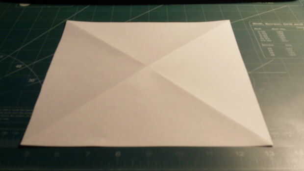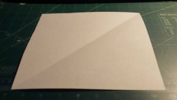 Empezar doblando una de las esquinas de su papel en el lado opuesto. Luego, corte la sección rectangular de papel que no es parte de, o debajo de este doblez apagado. Desechar la pieza rectangular. Luego abra la tapa y repita con el otro lado para formar una "X".