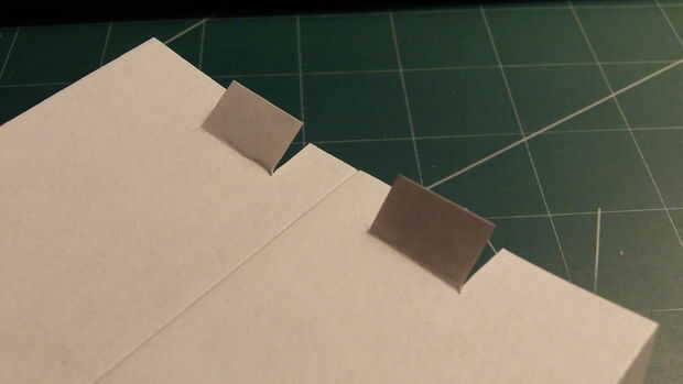 Empezar a hacer tus ascensores marcando el terreno es la mitad de una pulgada por encima (con las alas dobladas hacia arriba) la raíz del ala. Haga otra marca 3/4 de pulgada por encima de eso. Después de que ha hecho su marca, corte alrededor de la mitad una pulgada hacia el borde de ataque hacia adelante de cada punto. Una vez que termines de corte, tire del papel del elevador directamente hacia adelante. Repita en el otro lado.