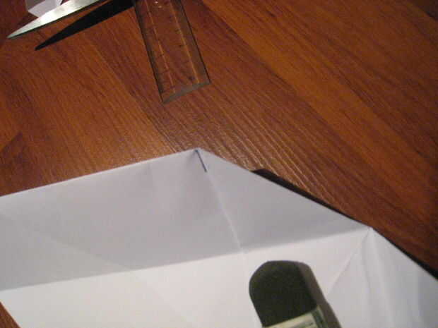 Ahora viene la parte difícil. Miden 1 cm de la esquina, a la dirección del centro. (Yo usé bastante imagen para aclarar).