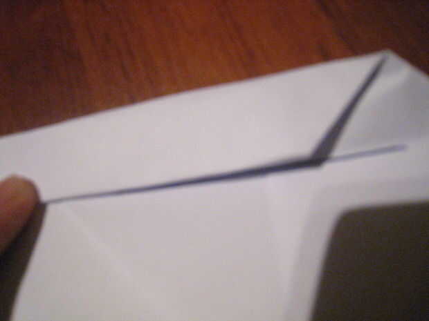 Luego, jale las esquinas hasta la segunda línea plegable. (como se muestra y etiquetado en la foto)