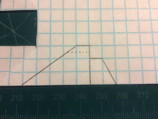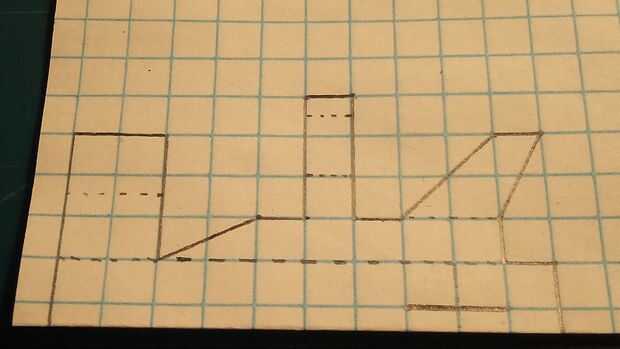 Iniciar la construcción de su serpiente del Turbo por esbozar el diseño aparecido en la primera foto. El papel de gráfico que esto se hace en el debe tener un conjunto de cuadros doblada por la mitad en su pliegue. El fuselaje es de 10 cajas de longitud y tiene un contrapeso de 3 por 2 casillas. Una caja de la parte posterior del fuselaje, hacer una sólida línea a lo largo de las cajas de línea 0,5 gráfico por encima del pliegue que se extiende 2 casillas adelante. Entonces 2 cajas hacia el interior de la parte posterior del fuselaje, hacer una línea vertical punteada. El trazado de las líneas es complejo, por lo que es más fácil mostrar que explicar. Luego córtelo hacia fuera.'