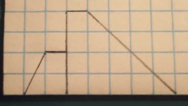 Después de que el fuselaje se hace, tomar otra hoja de papel que se dobla por la mitad a lo largo de las líneas de cajas. Marcar el ala como se muestra (cajas de 1 de longitud por 8 cajas de ancho y una porción barrida frente a este cuadro de 1 caja eliminaron cada caja hacia la parte delantera del fuselaje). Luego cortar el ala. Medir 2 cajas a lo largo del pliegue, medir dos cajas hacia arriba de una marca y hacer otro punto. Luego trace una línea diagonal conectar esta nueva marca a la que más lejos. De la marca que acaba de realizar, medir una caja más lejos de la ahora conectado a la línea y haga una marca. Esboce una línea entre esta marca y la otra marca a lo largo del pliegue. Luego corte los estabilizadores horizontales.