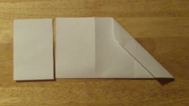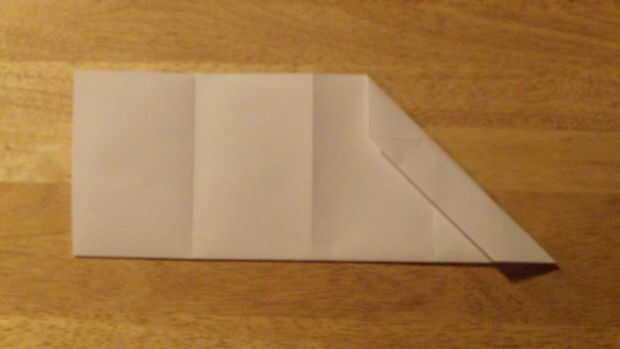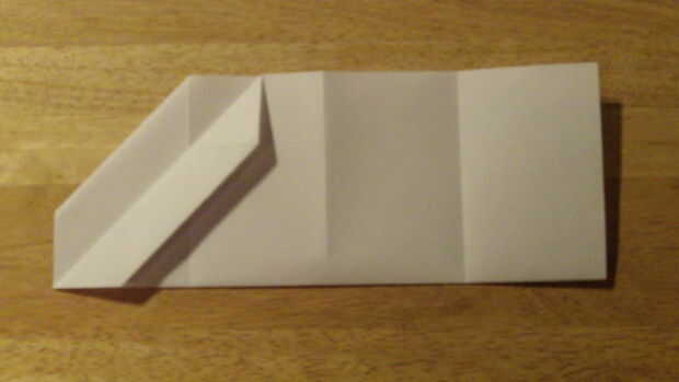 Primero, dobla el papel por la mitad a lo largo de su longitud. Luego, en uno de los cuartos, doblar la esquina del papel hasta el pliegue. Para ello en el otro lado. Dobla el papel sobre sí mismo otra vez para hacer el barrido de vanguardia cubren más. Repita en el otro lado. Desde aquí, cortar la parte inferior cuarto lugar.