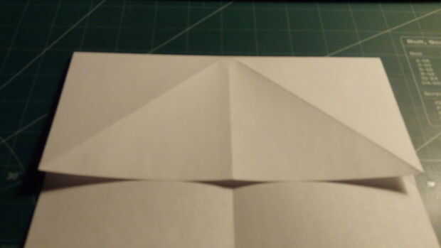 En primer lugar, comenzar doblando el papel por la mitad longitudinalmente. Tire una de las esquinas del papel hacia abajo hasta el borde largo del otro lado. Repita que esta invertida, con la otra esquina.