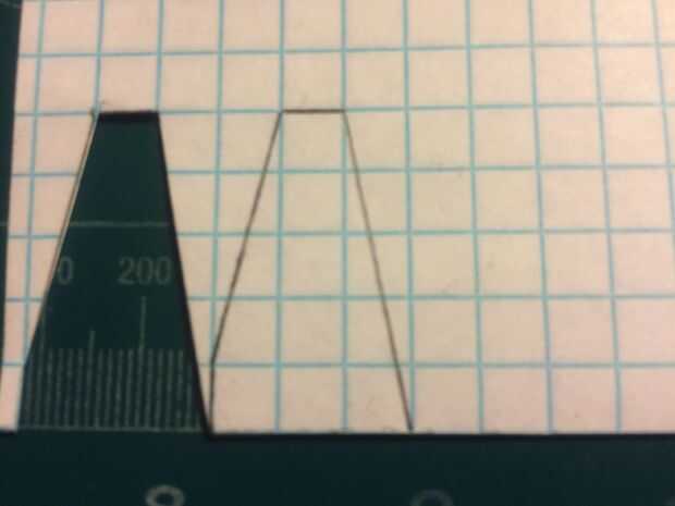 Después de que el fuselaje se hace, tomar otra hoja de papel que se dobla por la mitad a lo largo de las líneas de cajas. Marcar el ala como se muestra (1 caja de constante acorde a la raíz, un barrido de vanguardia de 1 caja de acorde que se decae cada 4 cajas hacia afuera de la caja acorde constante;) y un borde posterior barrido de 1 caja de decadencia a lo largo de las 5 cajas de envergadura. Esto completa las alas.