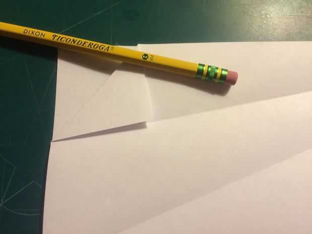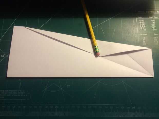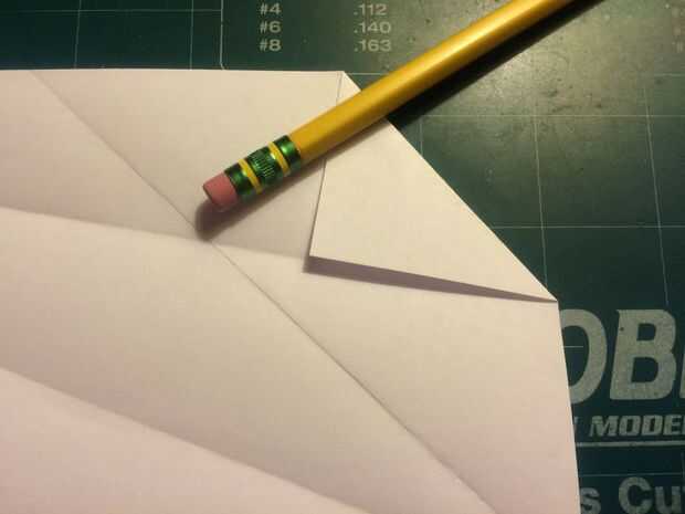 Tomar su papel y dóblela a lo largo de su longitud. Tire de las esquinas y doblar sus pliegues en el centro. Desdoblar el papel, luego doblar los bordes en los pliegues que ha hecho con los pliegues anteriores. Después de hacer esto, doblar las esquinas del papel hacia abajo en cada lado, como se muestra. Después de esto, doble los pliegues los pliegues hacia abajo sobre la parte superior de los mismos. Continúe plegar el papel a lo largo de los pliegues hasta que su papel coincide con la última fotografía para crear las superficies de sustentación.