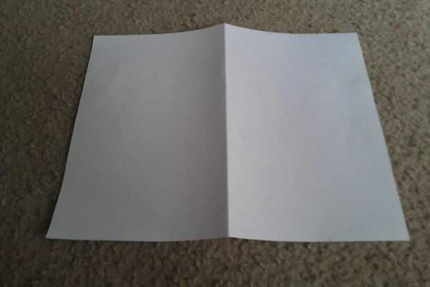 Se trata de cómo hacer el avión de papel más rápido que he visto. Llaman el águila.Paso 1: Doblar por la mitad Este es un paso fácil. Sólo doblar una hoja de 8,5 x 11" de papel en medio abajo el centro como en la foto y luego abrirlo para arriba otra