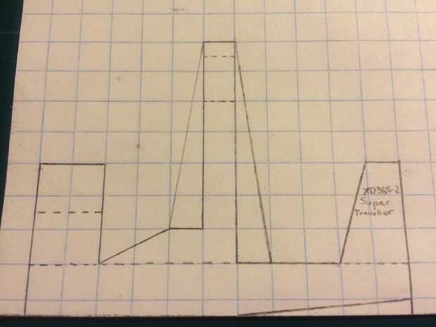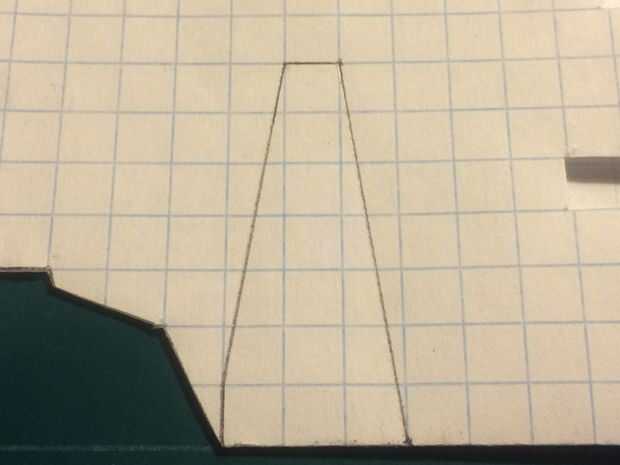En primer lugar, comenzar por plegamiento eres tu papel milimetrado en la mitad (excepto tres cajas en el lado perforado). Una vez que el papel ha sido doblado adecuadamente, hacer dos marcas--11 cajas completos apart (permite un cuadro más detrás de la armadura de avión). Use una regla para hacer una línea recta con una longitud de 11 cajas directamente a 1 fila de cajas de las dos marcas que acaba de hacer. Luego realizar los estabilizadores, largueros y contrapeso como se indica. La línea diagonal en el fuselaje ventral como se muestra y seguir todas las marcas de la fotografía.