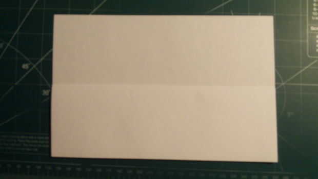 Dobla el papel a lo largo de su anchura. Una vez que hayas hecho el pliegue, pliegue los extremos exteriores hacer cuartos.