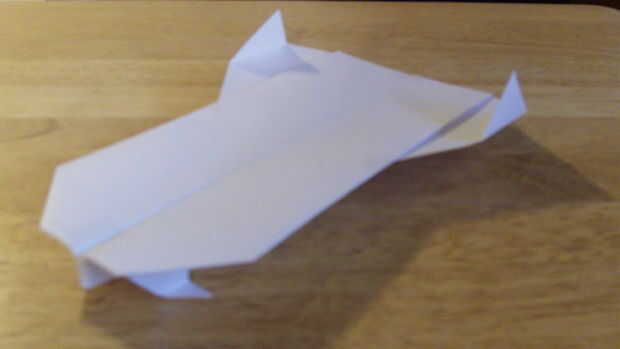 rápido de la gama larga, y ágil, el avión de papel del Thunderjet es un dardo con un ala de gaviota invertida, bastante similar en forma a la Investigación Dart.Designación del USAF de TAA: F180-1Paso 1: materiales Necesarias:1 pedazo de papel de 8,5