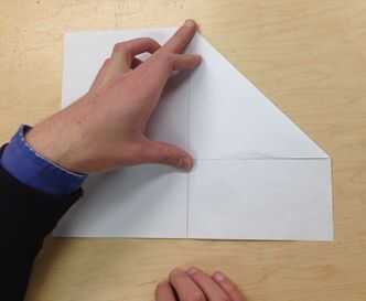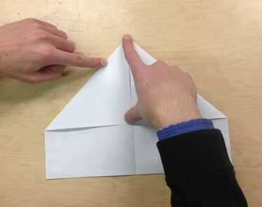 i. llevar arriba-derecha de la esquina en el centro del papel y alinee el borde superior derecho en el pliegue de centro creado en el paso 1.