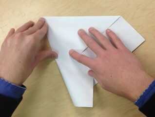II. sostener la nueva izquierda en ángulo doble firmemente en esta alineación y crear el pliegue a lo largo del ala izquierdo de la base.