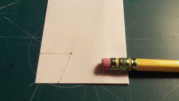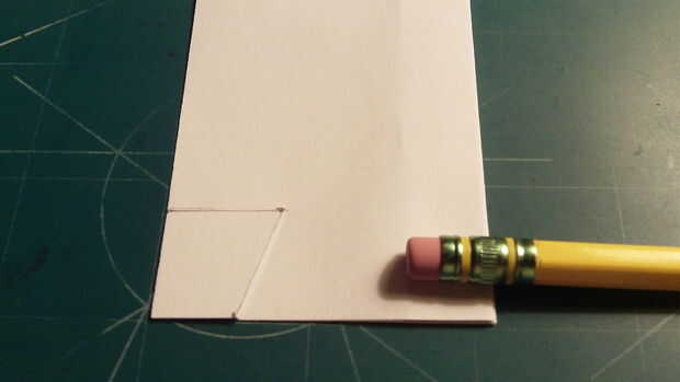 Iniciar la construcción de las aletas por doblar su avión a la mitad. Entonces 3/4 de pulgada (0,75 pulgadas) de la punta del ala a lo largo del borde posterior. Luego se mide 1/2 de pulgada (0.5 pulgadas) en desde el borde de fuga a lo largo de la punta del ala. Luego se mide 3/4 de pulgada en el ala de la marca que hizo a lo largo del borde posterior. Conecte esta marca a la que se hizo de y luego a lo largo de la punta del ala. Luego corte a lo largo de la segunda línea.