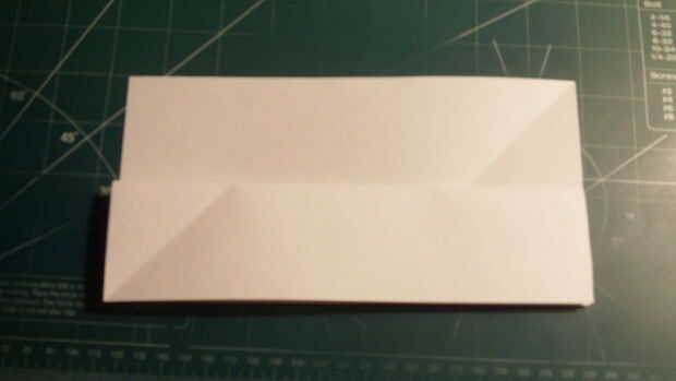 Hacer medio doblar en su pieza cuadrada de papel. Luego doblarlas en el centro otra vez.