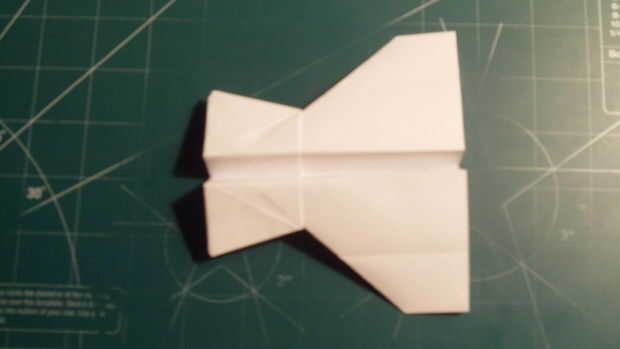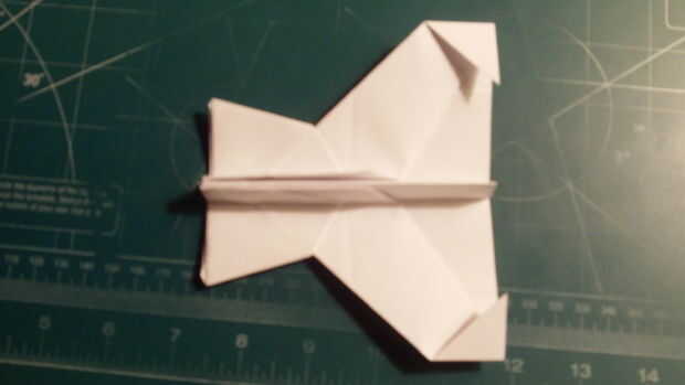 Primero, doblar los extremos del ala en los pliegues del cuarto. Luego en los pliegues de cuarto mismo doblar la sección del ala en un ángulo de 90 grados.