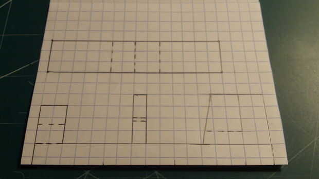 En primer lugar, comenzar por plegamiento eres tu papel milimetrado en la mitad (excepto tres cajas en el lado perforado). Una vez que el papel ha sido doblado adecuadamente, haga dos marcas--17 cajas full apart. Use una regla para hacer una línea recta con una longitud de 17 cajas directamente a 1 fila de cajas de las dos marcas que acaba de hacer. Marcando una casilla 14 por 3 cajas para hacer el ala. Luego realizar los elevadores, timón, struts y contrapeso, tal como se muestra. Siga las marcas de la fotografía. Una vez que todo está marcado hacia fuera, cortar el fuselaje y las alas.