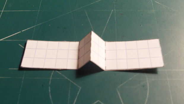 Ahora se pliega el ala a la forma apropiada. En primer lugar, tomar su ala y doblarlo por la mitad de ancho. Entonces se despliegan todos menos 2 filas de estas cajas.