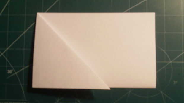 Dobla tu papel por la mitad lo largo. Luego doblar las esquinas. Después de esto, doblar las esquinas hacia abajo a lo largo de su borde. Repetir esta acción a lo largo de la línea diagonal.