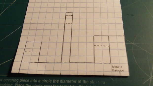 En primer lugar, comenzar por plegamiento eres tu papel milimetrado en la mitad (excepto tres cajas en el lado perforado). Una vez que el papel ha sido doblado adecuadamente, haga dos marcas--13 cajas full apart. Use una regla para hacer una línea recta con una longitud de 15 cajas directamente a 1 fila de cajas de las dos marcas que acaba de hacer. Luego realizar los elevadores, timón, largueros, tren de aterrizaje y contrapeso como se indica. Siga las marcas de la fotografía. Una vez que todo está marcado hacia fuera, cortar el fuselaje.