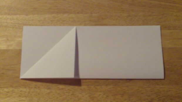Comienza doblando el papel por la mitad a lo largo de su longitud. Apriete la esquina en el centro. Repita en el otro lado.