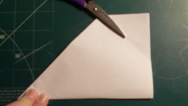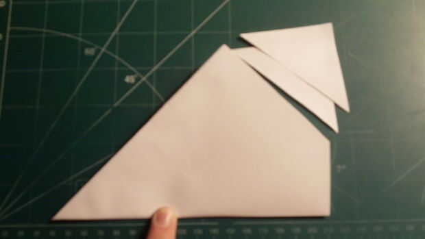 Ahora plegar su avión a la mitad con la superficie de sustentación entre ambas partes. Luego corte a lo largo del pliegue que hiciste anteriormente. Cortar los desechos que provienen de la esquina que se arrastra y reciclan.
