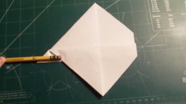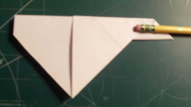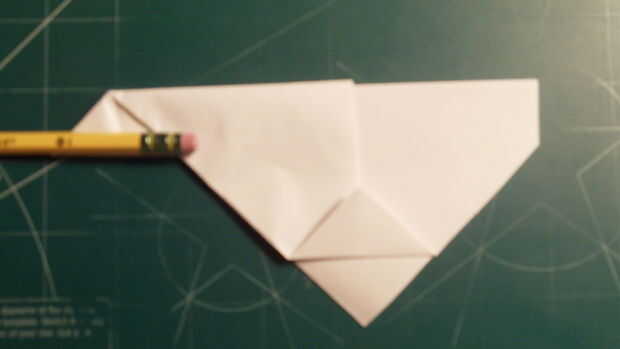 Hacer cada ala plegable propia casi una pulgada de cada lado del papel. Una vez que cada ala se dobla, dobla las aletillas hasta 1 pulgada en desde la punta del ala. Una vez que has establecido un pliegue, pliegue la aletilla por debajo del ala a lo largo del pliegue.