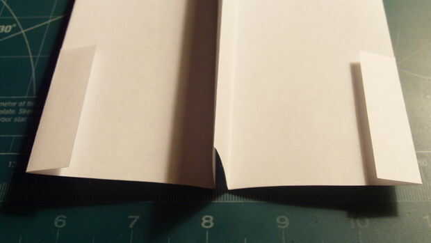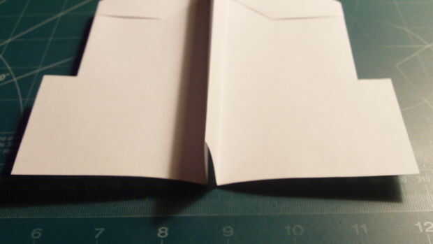 Encontrar el centro de los bordes del ala (unos 2,25 pulgadas en desde el borde de fuga). Desde allí, mida 5/8 de una pulgada hacia el interior recto. Luego corte a lo largo de esta línea. Proceder a doblar los extremos del ala para arriba, paralelo del fuselaje, con la parte delantera dos doblado para arriba, por encima del ala y la parte posterior dos plegados bajo el ala.