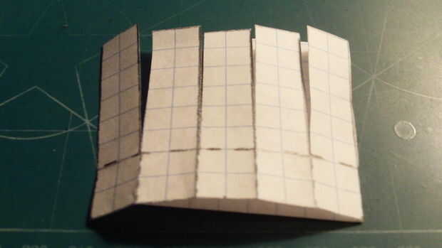 Cut along the solid lines you made previously. Éstos completan los rotores ellos mismos. Una vez que han cortado cada uno de ellos por consiguiente, doblar por la línea punteada. Después de esto, el huracán debería aparecer como se muestra en la última fotografía.