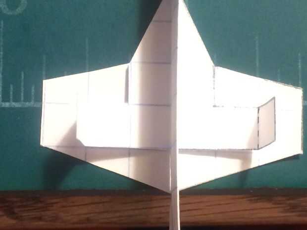 Corte y despliegan sus alas y su fuselaje invertido del tirón. Cinta el ala al fuselaje mediante la aplicación de cinta a los largueros, con la proyección de la apropiación del ala. Corte cualquier exceso cinta. Voltee la armadura de avión y luego aplicar la cinta en el borde de ataque del ala que se sienta encima de las extensiones de la raíz de vanguardia. Las alas deben ser plegado hacia abajo lo suficiente para que los patines pueden tocar el suelo mientras que es paralelo del fuselaje. Recorte sus estabilizadores horizontales y pase a través del fuselage debajo del timón. Doblar para arriba una vez a través de y pegarlas al fuselaje. Aplicar una grapa en la zona del contrapeso. Esta aplicación completa su Lancer.