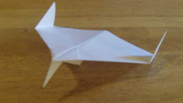 rápido de la gama larga, y ágil, el avión de papel del Thunderjet es un dardo con un ala de gaviota invertida, bastante similar en forma a la Investigación Dart.Designación del USAF de TAA: F180-1Paso 1: materiales Necesarias:1 pedazo de papel de 8,5