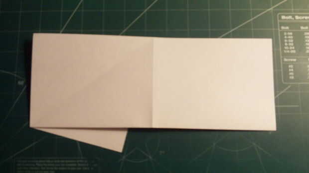 Iniciar este paso por doblar el papel para que en los bordes bajan al centro del borde y el doblez de la mitad de ancho. Luego dobla el papel de la esquina en el pliegue como se indica. Luego doblar el papel hacia abajo otra vez a lo largo del pliegue. Repita en el otro lado.