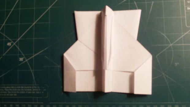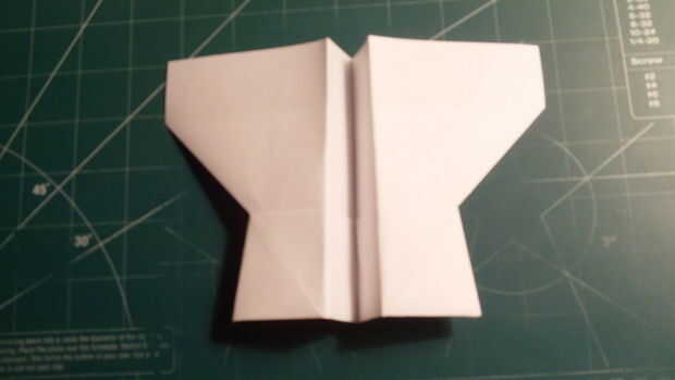 Primero, plegar el papel por la mitad a lo largo de su centro. Luego de una pulgada por encima de la parte inferior del fuselaje, plegar las alas. Una vez que ambas alas se doblan, doblan las aletillas. Para ello, dobla el papel de los extremos del ala en una pulgada.