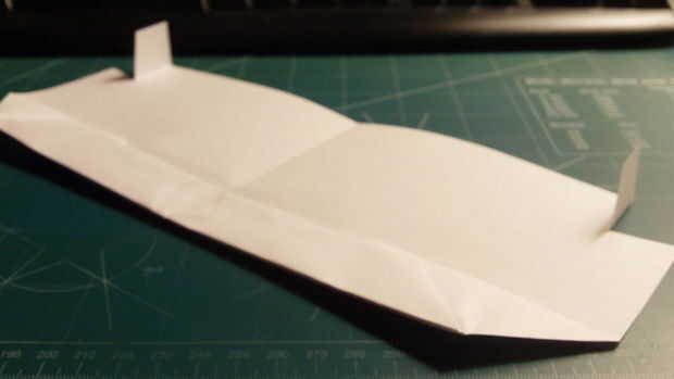 rápido de la gama larga, y ágil, el avión de papel del Thunderjet es un dardo con un ala de gaviota invertida, bastante similar en forma a la Investigación Dart.Designación del USAF de TAA: F180-1Paso 1: materiales Necesarias:1 pedazo de papel de 8,5